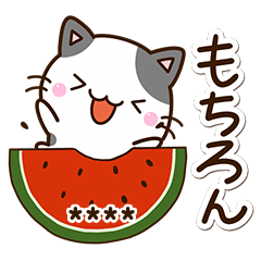 スタンプ説明 『ちびブチ【夏・花火】』のカスタム版。自分の名前や相手の名前、好きな言葉を何度でも入力できるかわいい猫スタンプ。ハチワレねこ好きな方に。【かたこ】ネコ・スイカ