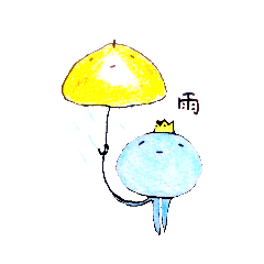 スタンプ説明 メタバースの奥底、めたメタバースに流れる1本の大河“オルターナ”に暮らす、電子海月ぴーぷると彼の王冠に居候しているネオンバード。近所を泳いでいる仲間たち。