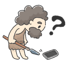 スマホを発見した原始人