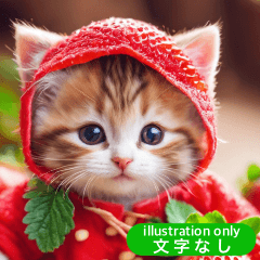 スタンプ説明 春夏秋冬年中使える/文字なし/アレンジ/素材/ねこ/こねこ/ネコ/キャット/cat/フルーツ/いちご/ストロベリー/strawberry/食べ物/果物/人気/おすすめ/実写/画像生成/AI