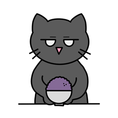 スタンプ名 黒米ご飯が好き、ニャー!(韓国語)