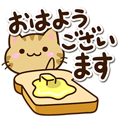 スタンプ名 小さいキジトラ猫【食べ物】さびねこ