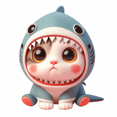スタンプ説明 "サメ猫、絵文字ステッカー、ユーモラス、動物、面白い、LINEスタンプ、イラスト、コミュニケーション、