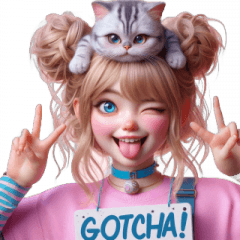 スタンプ説明 "頭の上に猫、変な表情、ユーモア、変わっている、LINEスタンプ、イラスト、コミュニケーション、