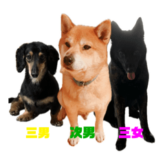 スタンプ説明 柴犬の虎鉄、ミニチュアダックスの鉄男、甲斐犬の杏子(ずんこ)のスタンプ