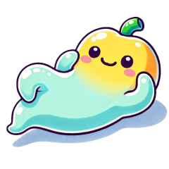 スタンプ説明 怖くないおばけ「ポポ」のスタンプ。りんごやバナナに見えるカラフルな体。日常会話で使いやすい表現や言葉がいっぱい。幽霊やカラフルなアニメが好きな人におすすめ。