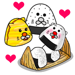 スタンプ説明 ねこ好きさんへ。おにぎりにぎっておきました。行楽のお供にどうぞ。