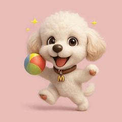 スタンプ説明 3Dアニメーション風なふわふわトイプードル。首輪のMがチャームポイント。癒しと可愛さを毎日お届け!