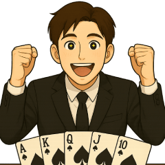 スタンプ説明 ポーカー好き必見!勝負どころで使えるリアクション満載のスタンプ。 ロイヤルフラッシュやナイスハンドの瞬間に、笑顔でキメる「ロイヤルきた〜」で場を盛り上げろ!