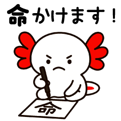 スタンプ説明 小学生がつい言っちゃう、あのフレーズをウーパールーパーが再現!いたずら心あふれるセリフで、トークをもっとおもしろく。