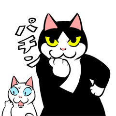 スタンプ説明 ちょっぴり太ったハチワレ猫、おはぎ(の贅肉)が今日も躍動する。かわいい靴下模様。