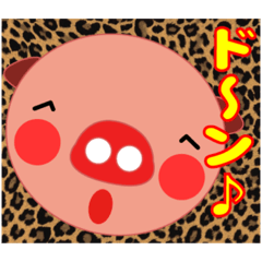 スタンプ説明 豹柄をまとった豚ちゃんの敬語の挨拶集です。