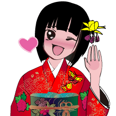スタンプ説明 可愛くて、萌える、着物の女の子のスタンプです。