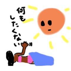スタンプ説明 空や自然の仲間と、日焼けしたお姉さん、お姉さんの紳士な犬