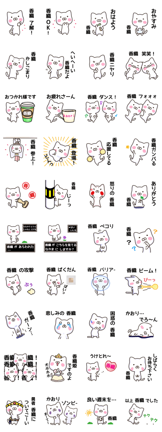 ネコの香織さん専用名前スタンプです。かおりさん、宜しければ使ってみて下さい。よろしくお願いします。