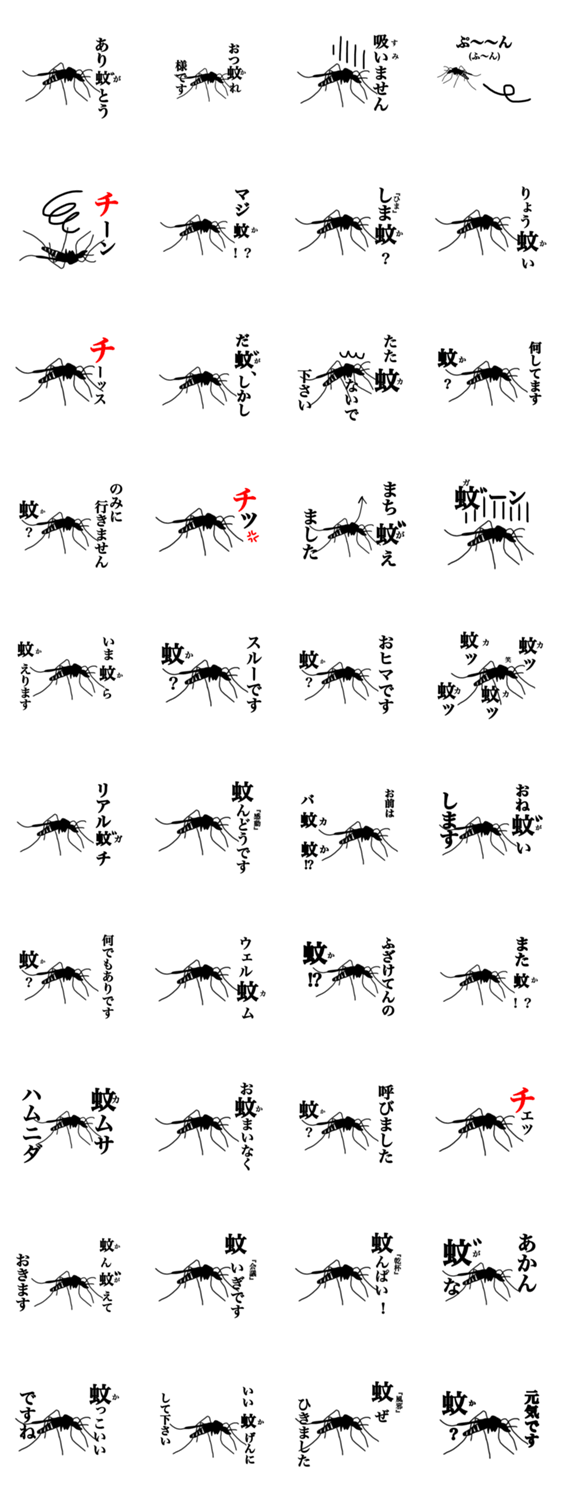 この時期イヤな蚊も、日常会話で使えば愛しくなる?スタンプです。