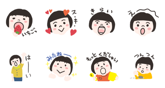 こっちゃん(1歳半)が話す日々の言葉を集めたスタンプ。