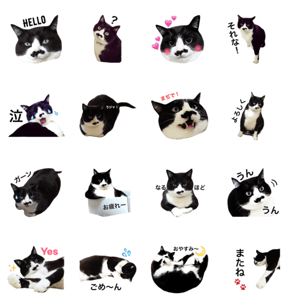 はちわれ猫のチビたん。よく見るとお鼻に日本列島のような模様があるチビたんのスタンプです。