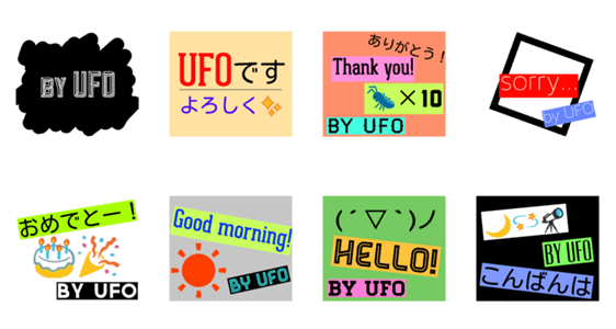 世界中のUFOさん専用の便利なスタンプです!挨拶だけでなく、よく使う言葉も作りました!!
