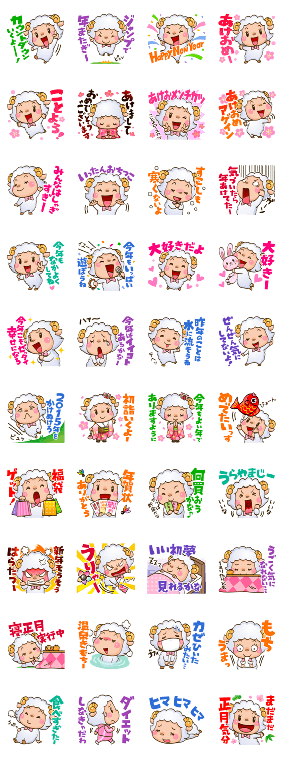 新年の挨拶など、年末年始に使用できる、2015年干支のかわいい未(羊)のキャラです。お正月はお友達にあけおめスタンプを送ろう!