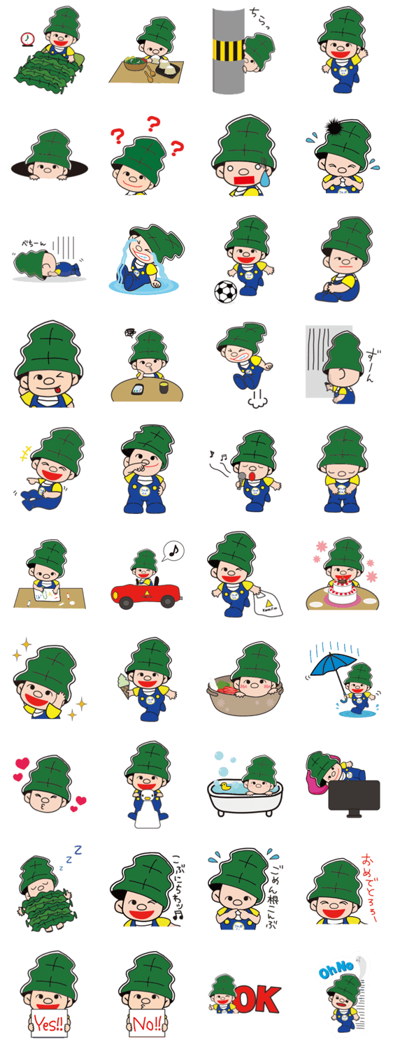 昆布の妖精「こんぶくん」のスタンプです。こんぶの帽子をかぶった5歳のおとこのこ♪