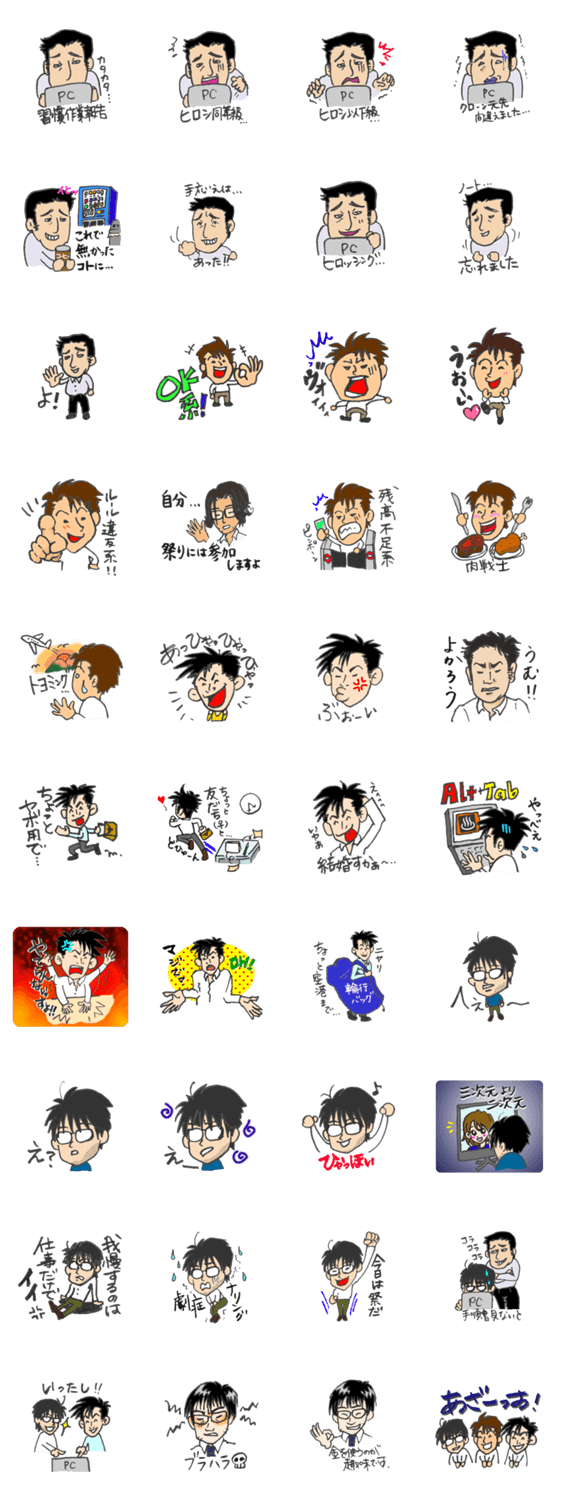 ヒロシ君とゆかいな仲間たちによる日常生活感あふれるスタンプです。これでアナタも超ヒロシ系?!