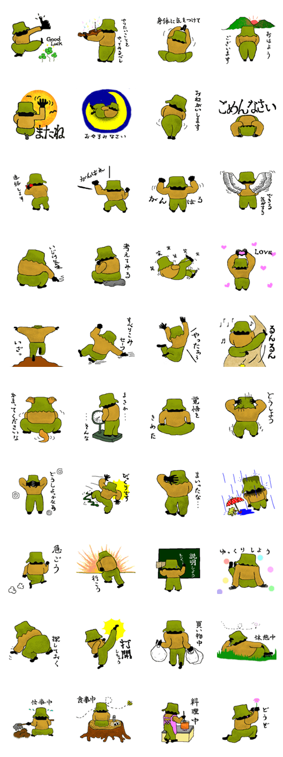 平凡な日常を精一杯生きる平凡な背中が表現するスタンプ。おじさんは可愛くないのにちょっとかわいい。そして彼はカッコ悪いのに何故かかっこいい。