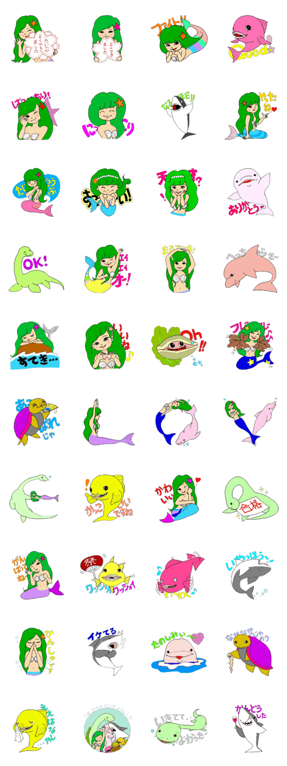 かんたん誉めことば、人魚とお友達 -LINEスタンプマニア