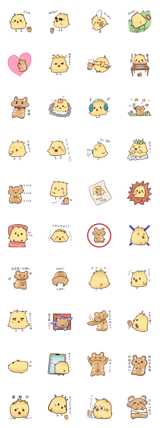 ちょっぴり乙女で面倒くさいハムスター「ハム助」と、感情表現豊かな「ピヨ助」のかわいいひよこのスタンプ!使いやすさ抜群!
