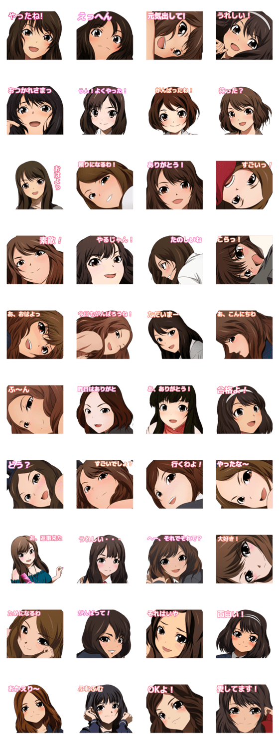 笑顔の女の子に励まされたり元気をもらったりするスタンプです。