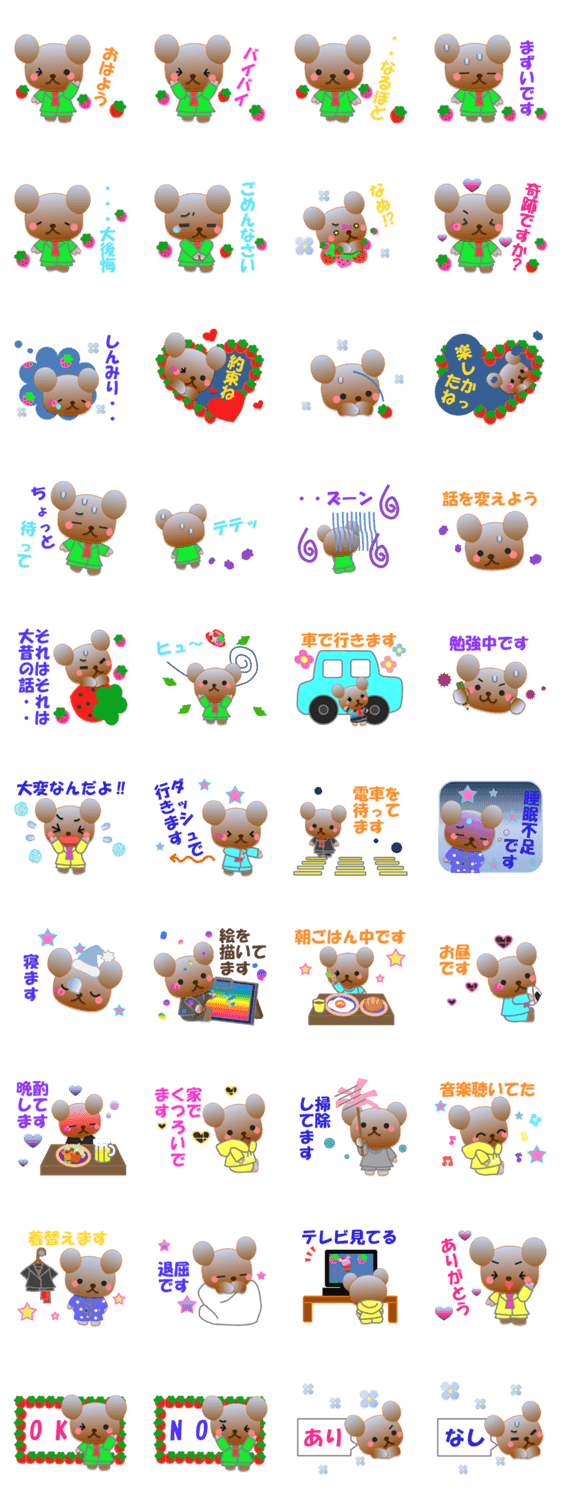 くまのスタンプです。日常でよく使う言葉を集めました。くま好きの方に。