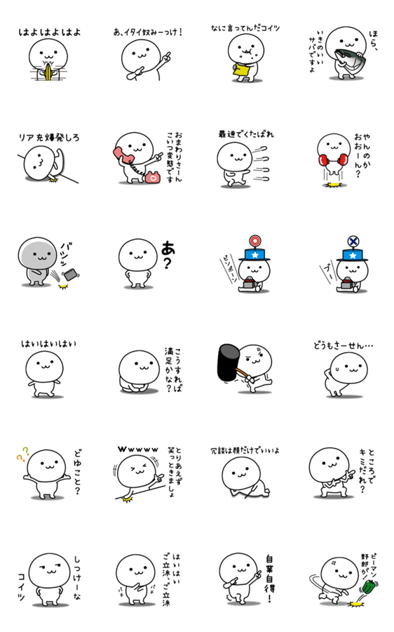 白くてまるいのが相手のメッセージに対し、挑発したり煽ったりしてくれます。ボケに対してゆるくツッコミたい時にご活用下さい。