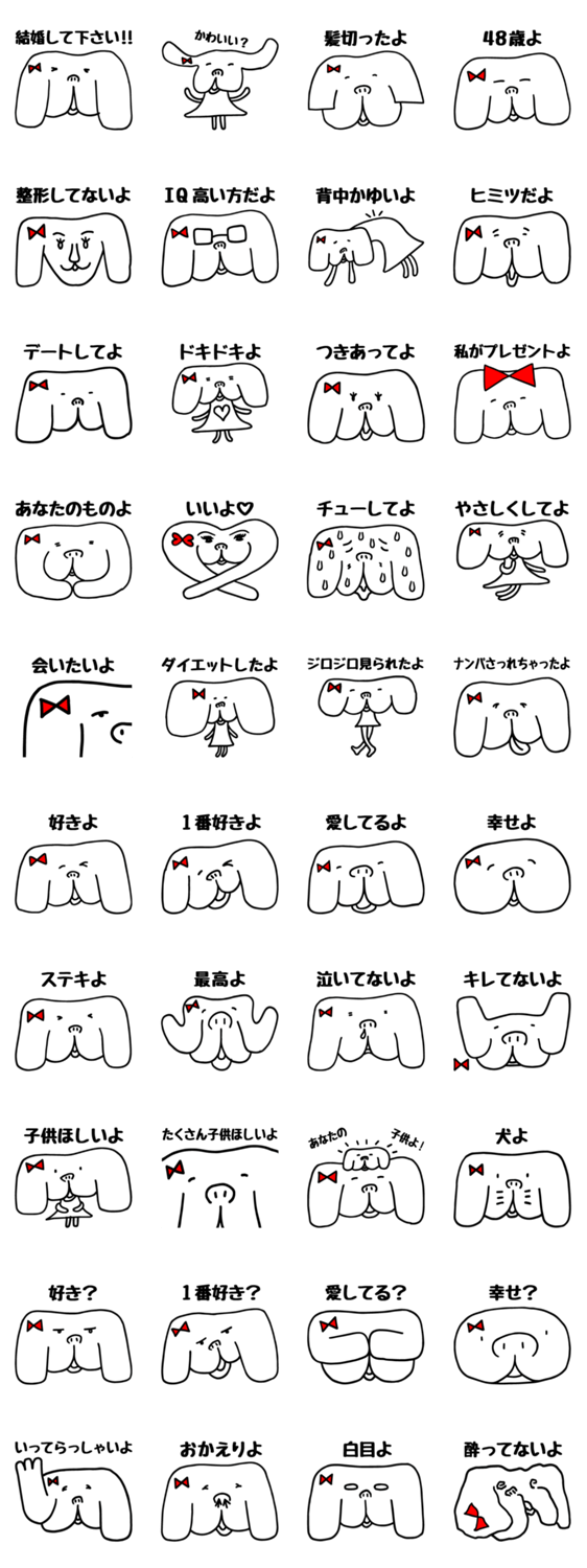 このスタンプを使って結婚しよう!!!LOVEマスターぶる子(48歳・犬)があなたの恋心を代弁!!!また彼女は、P-hamaが生み出すhamaキャラの一人でもある。