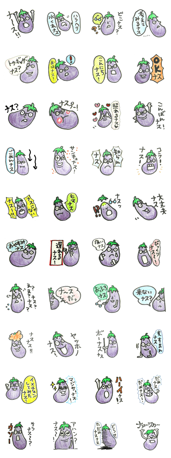野菜のナスのナスムラくん。 合言葉はいつだって「ナス!ナス!」 基本的にマイペースで一直線なナスムラくんを、よろしくお願いナス!