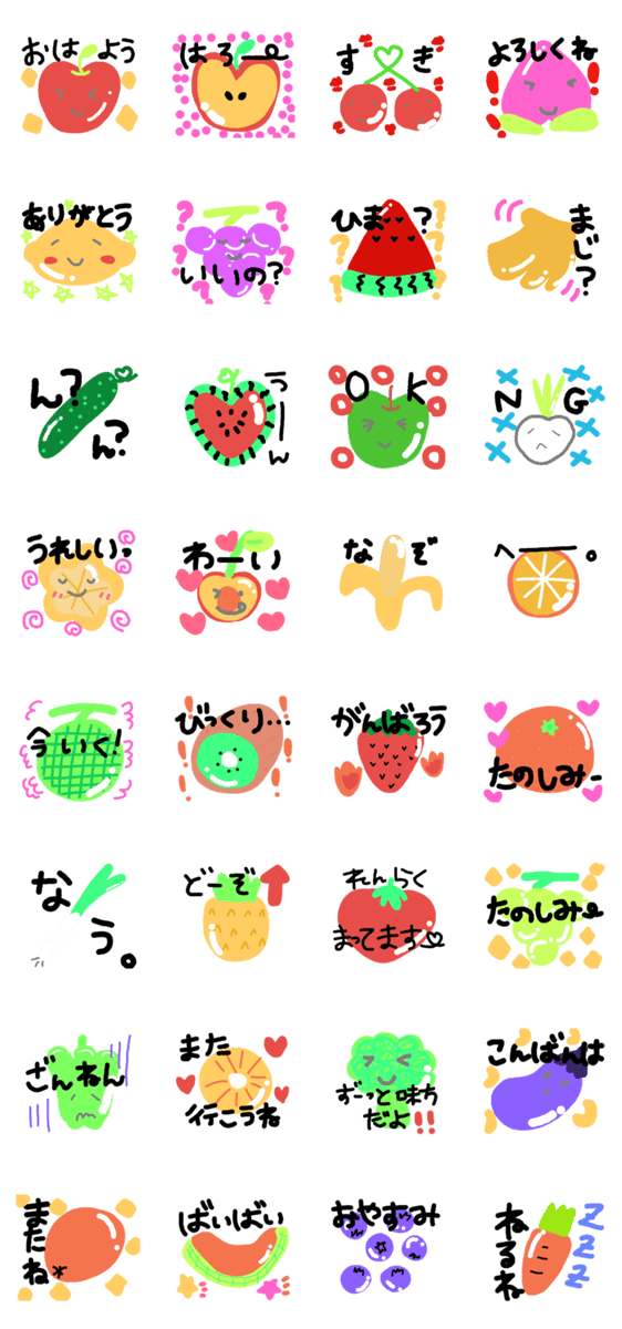 キュートなフルーツと野菜のスタンプです!ぜひぜひ、つかってください!