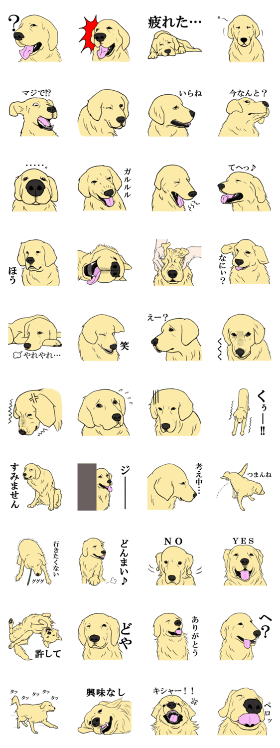 | スタンプ説明 | まるで人間のような表情のゴールデンレトリーバーのスタンプです。 |