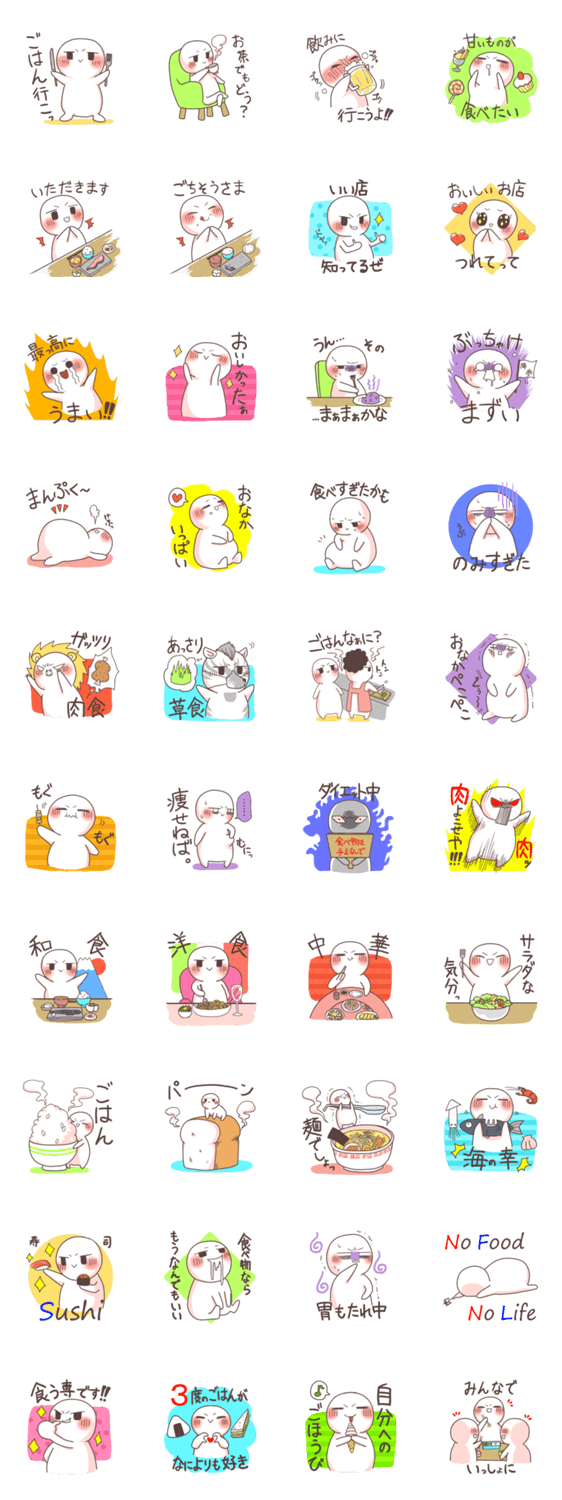 食いしん坊なまるたまによる、食いしん坊さんのためのセリフ付きスタンプ!気軽に食事やお茶に誘っちゃおう!Let's ごはん!