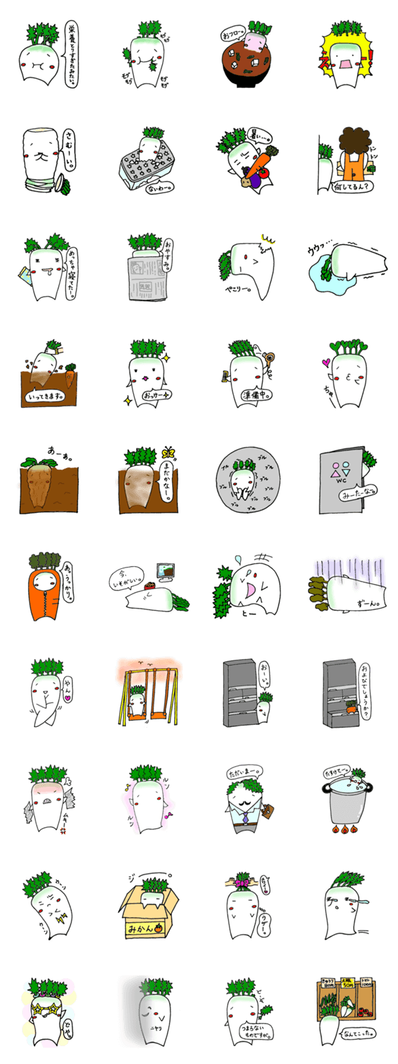 毎日使える、大根さんスタンプです。