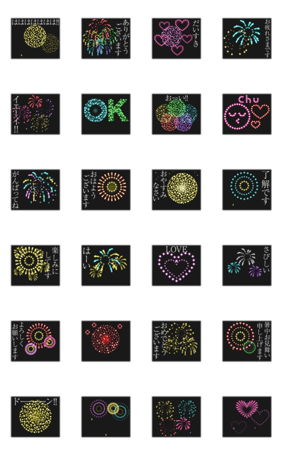 花火スタンプをトーク画面に打ち上げよう。華やかな花火で彩りました。