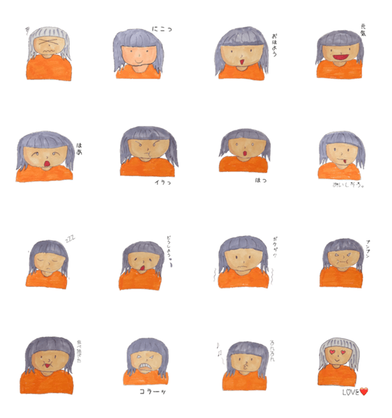 女の子の色々な表情をスタンプにして見ました。