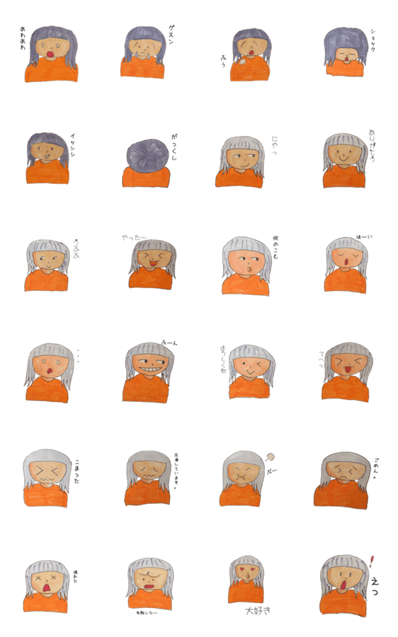 女の子の色々な表情をスタンプにして見ました。第2弾です。