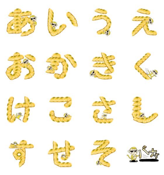バナナ猿の文字が登場です☆ バナナを使った文字を組み合わせて楽しくスタンプ送っちゃおう!!。