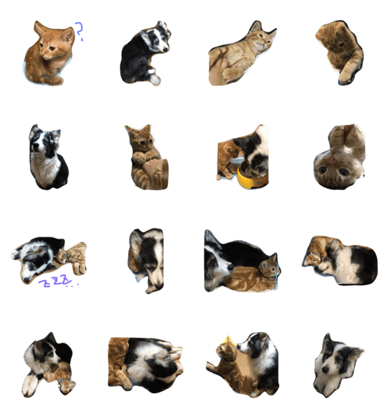 子猫と老犬のスタンプ