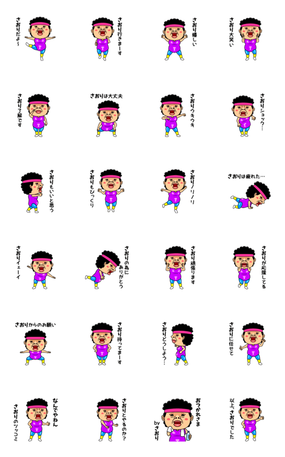 さおりおばちゃんがエアロビクスダンスで感情を表現します!全国のサオリ(沙織,早織,紗織,紗央莉,沙保里)さん専用の名前入り動画スタンプです。昭和レトロな一品★