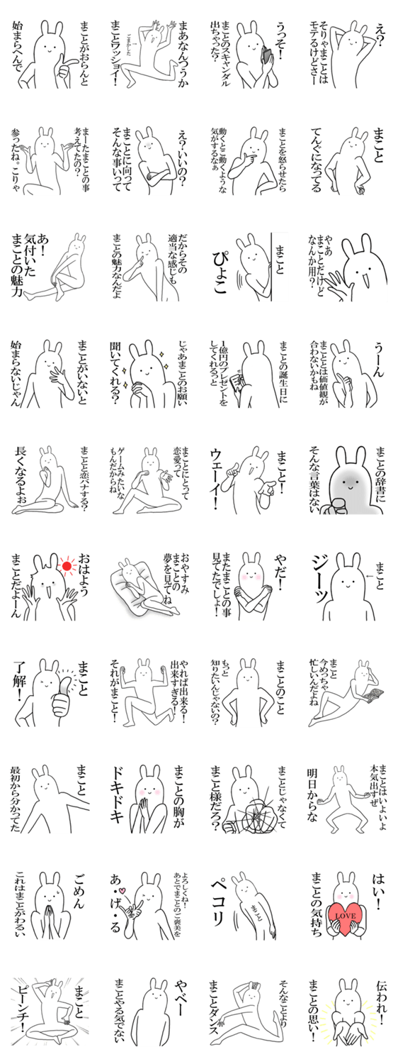 まことちゃんが使えるシュールな名前スタンプ。誠,実,慎,真琴,真,麻琴,淳,諒,允,惇,諄,信,丹,真人,亮,真古登,真弘人,麻子都,マコトなどまことちゃんが使えるスタンプだよ