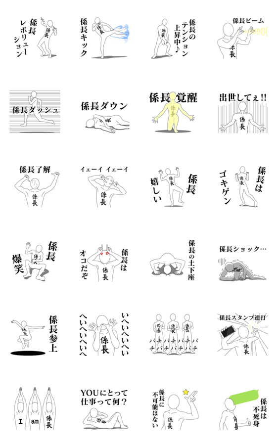会社の係長専用の動くスタンプ。面白いスタンプで社員や部下とコミュニケーションをとって、好かれる係長になりましょう! 身近な係長にプレゼントしても喜ばれます。