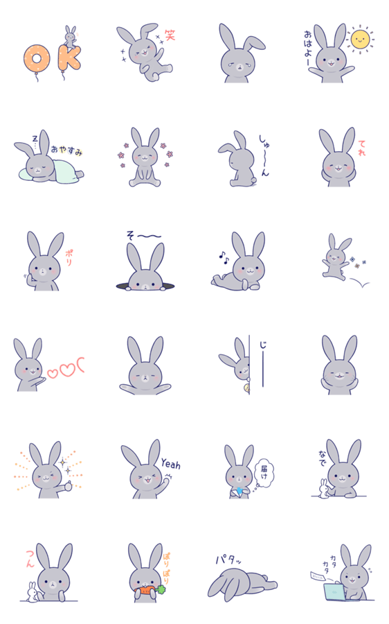 「なかよしうさぎ」グレー色うさぎの動くスタンプです!「寂しがりうさぎ」スタンプとのやりとりにも。