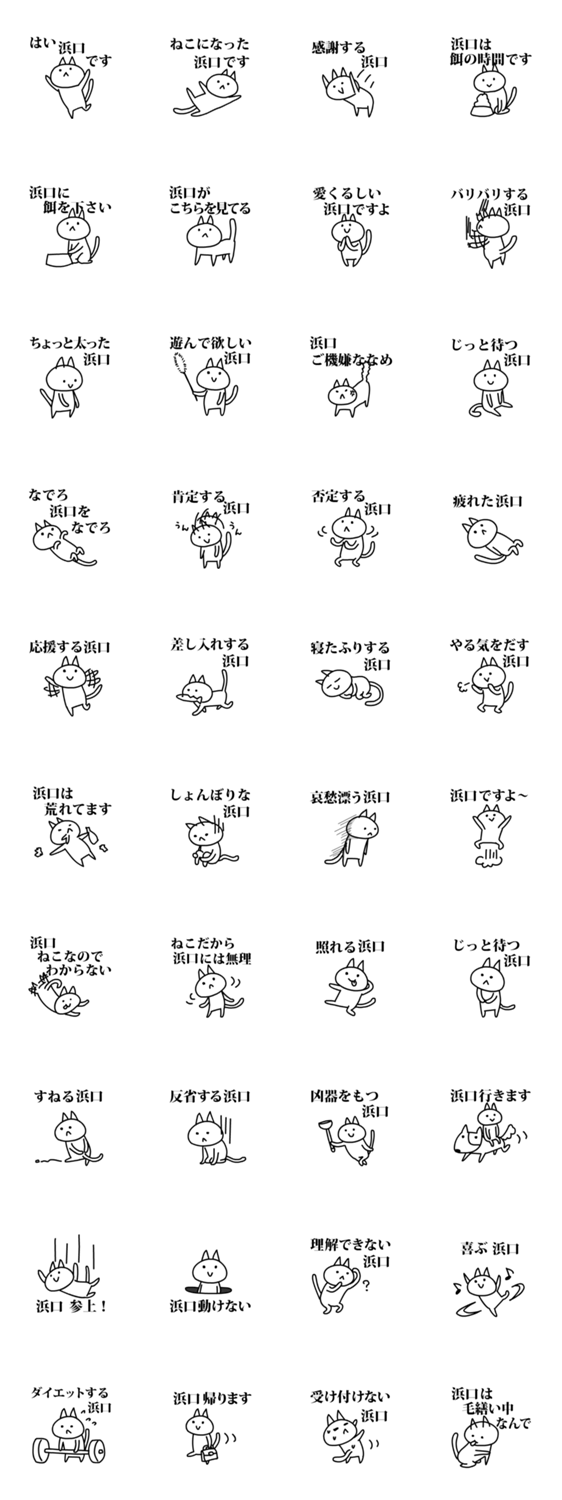 ねこになりました。その最高に愛くるしいかわいい仕草で、日常的に使えるスタンプです。苗字が入った名前スタンプなので毎日使えるんです。ニャー
