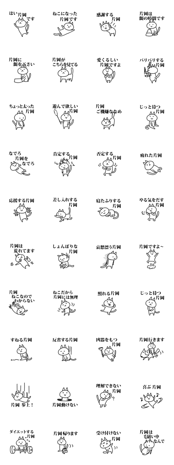 ねこになりました。その最高に愛くるしいかわいい仕草で、日常的に使えるスタンプです。苗字が入った名前スタンプなので毎日使えるんです。ニャー