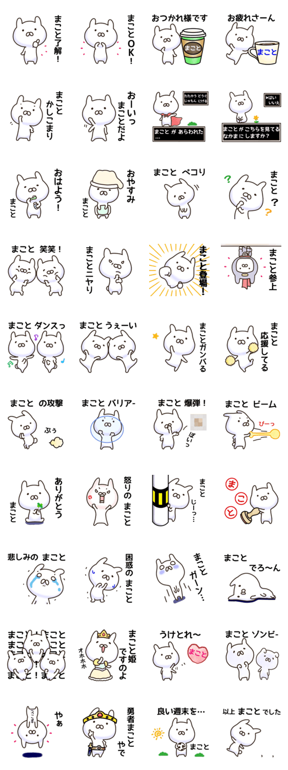 ウサギのまことさん専用名前スタンプです。誠さん、真さん、真琴さん、誠人さん、まだまだ沢山のマコトさんへ。宜しければ使ってみて下さい。よろしくお願いします。